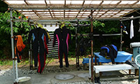 器材洗浄・器材干し・シャワー・着替え ダイビングハンガーを使って各自器材を干しましょう。