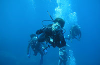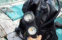 ゆっくりと深度を浅くとっていきます。水深5mまで上がったら安全停止を3分間します。