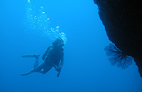 海の海況に寄ってはアンカーを出すので、耳抜きが心配な方はアンカーにつかまって潜降します。フリー潜降が出来る人は船の真下に集合です。