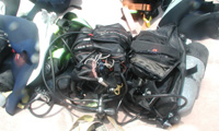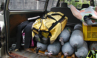 自分の器材をメッシュバックから出して船に乗せます。女性の方、力の弱いかたはスタッフに声をかけて手伝ってもらいましょう。