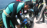 もし、力のない方は事前にお知らせください。水面でウエイト、BCDを外します。