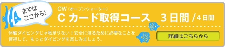 ¥ 28,000~ (タンク代・申請込) 2日~ レクチャー+4ダイブの海洋実習